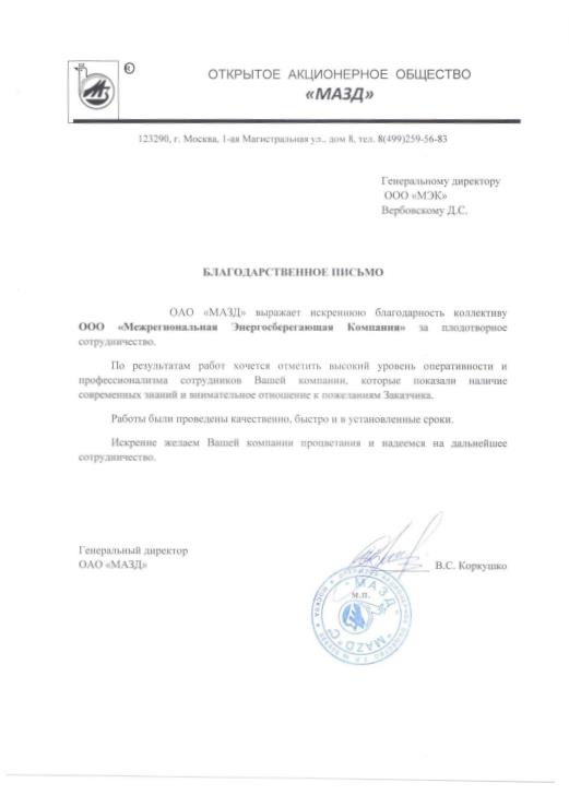 Наименование клиента: АО «МАЗД» (Главстрой)