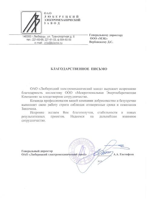 Наименование клиента: ОАО "Люберецкий электромеханический завод"