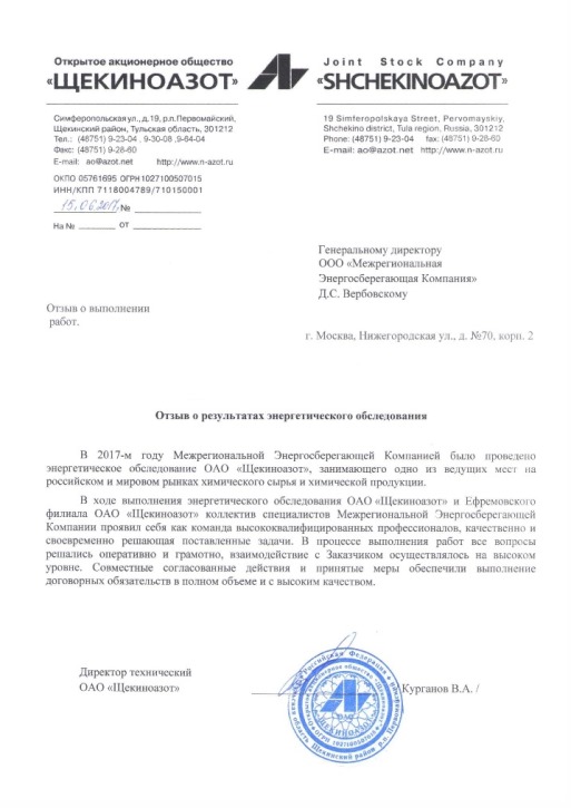 Наименование клиента: ОАО «Щекиноазот».