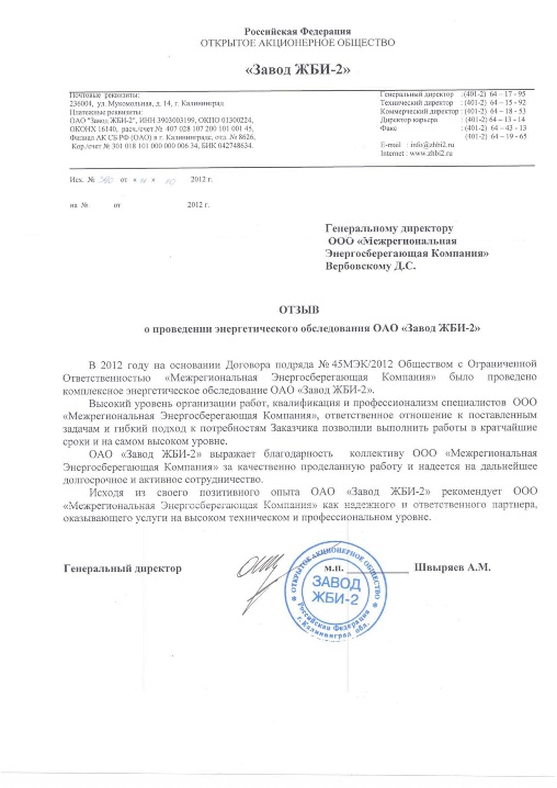 Описание объекта: ОАО «Завод ЖБИ-2» является крупнейшим предприятием Калининградской области по производству бетонных и железобетонных изделий, бетона, строительных растворов различного назначения, арматурных сеток и каркасов.