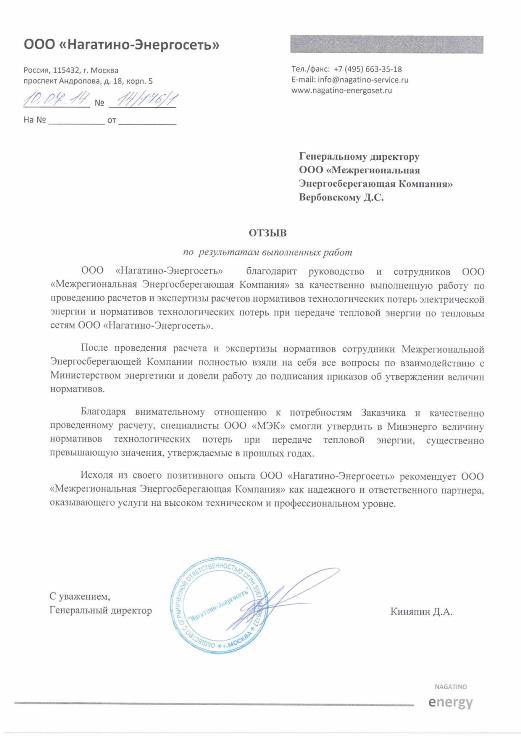 Описание проекта: В 2014 и 2015 годах Межрегиональной Энергосберегающей Компанией были выполнены проекты по расчету и сопровождению утверждения в Министерстве энергетики Российской Федерации нормативов технологических потерь при передаче тепловой энергии и нормативов технологических потерь при передаче электрической энергии.