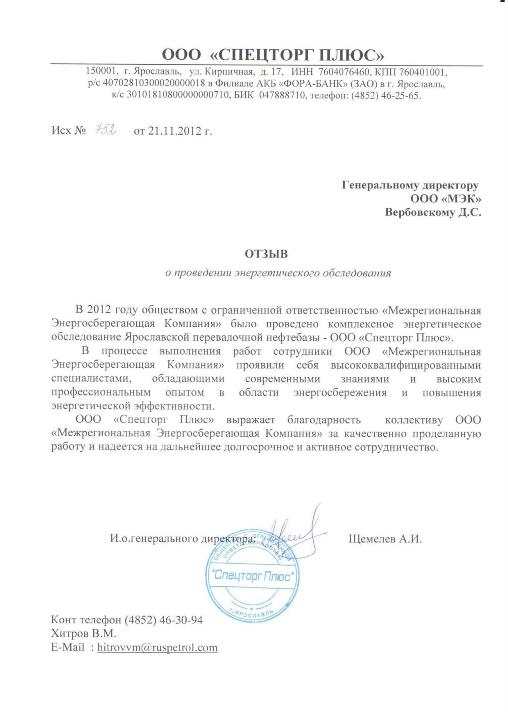 Наименование клиента: ООО «Спецторг Плюс» - Ярославская перевалочная нефтебаза
