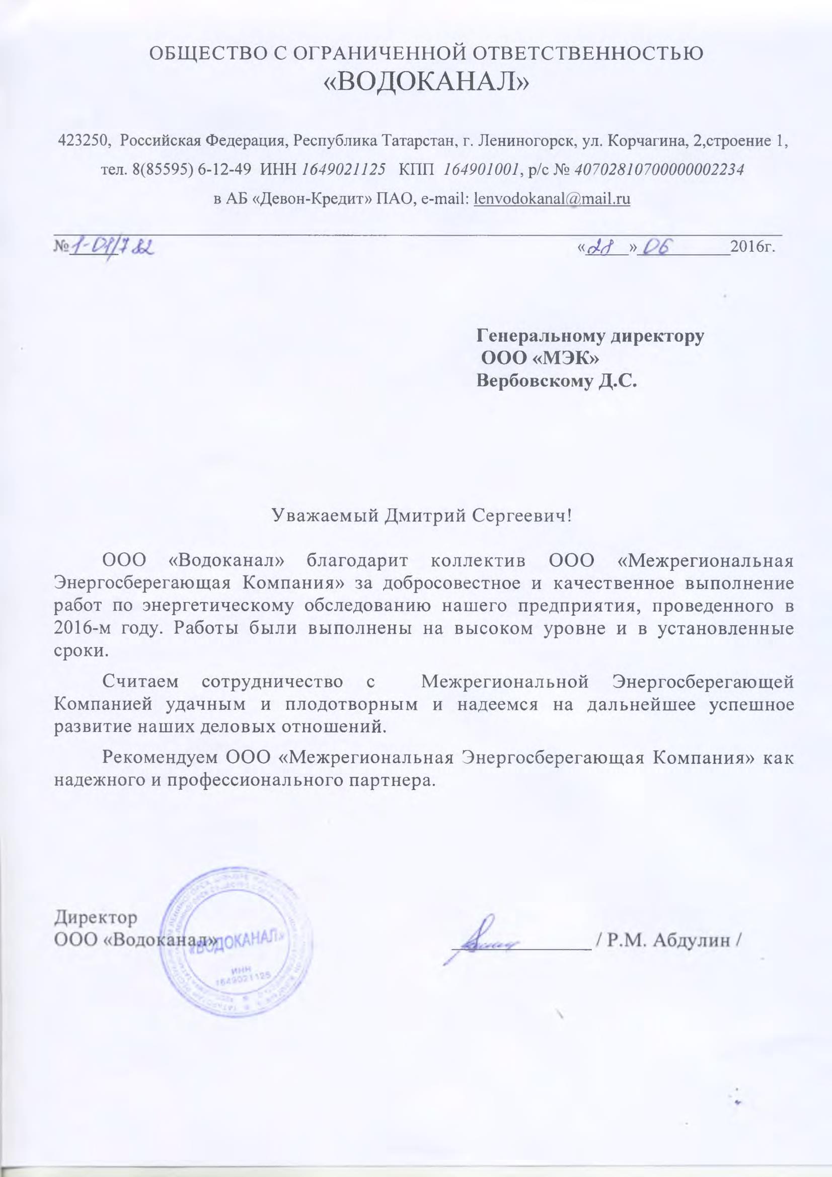 Описание объекта: ООО «Водоканал» - предприятие коммунального хозяйства, осуществляющее водоснабжение и водоотведение для нужд населения и юридических лиц г. Лениногорск Республики Татарстан.
