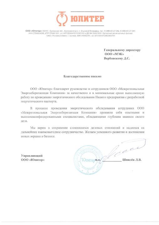 Описание объекта: ООО «Юпитер» - предприятие сельскохозяйственного комплекса, расположенное в Орловской области. Основные направления деятельности – производство и хранение зерновых культур, производство молочных продуктов и мяса.