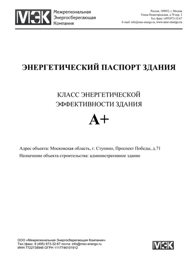 По вопросам оформления и заполнения энергетического паспорта здания звоните по телефону 8(495)973-32-67 или отправляйте заявку на адрес электронной почты info@mec-energo.ru